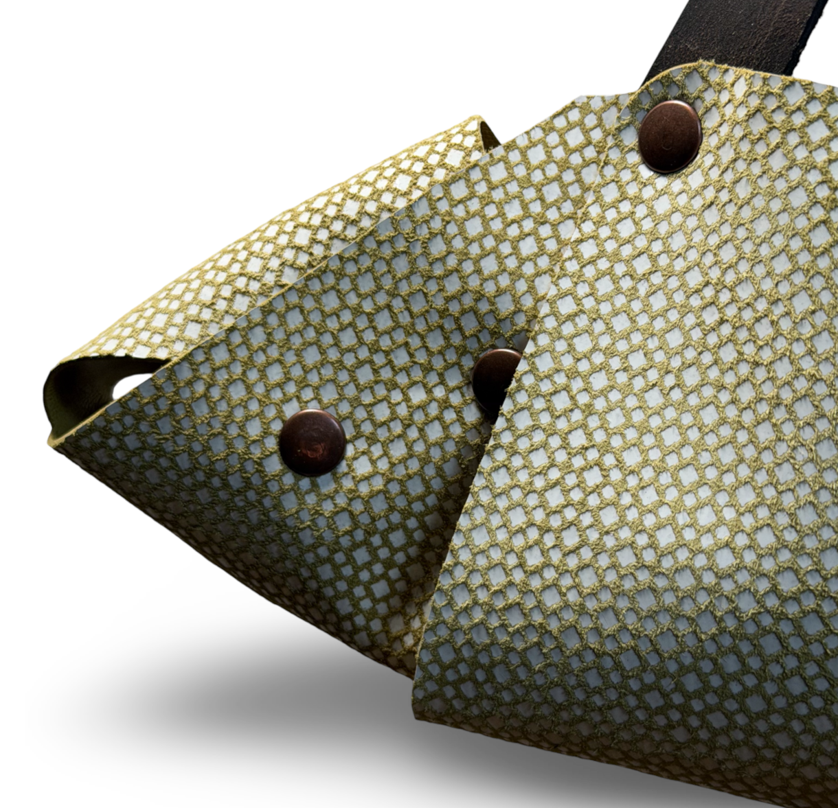 En este caso se ha confeccionado en piel de cabra entramada lo que le otorga una presencia aún más orgánica.