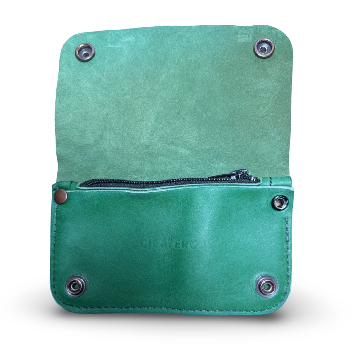 Creada para ir en el bolsillo trasero del pantalón en un cuero natural de máxima calidad que irá mejorando su imagen con el uso y el paso del tiempo.