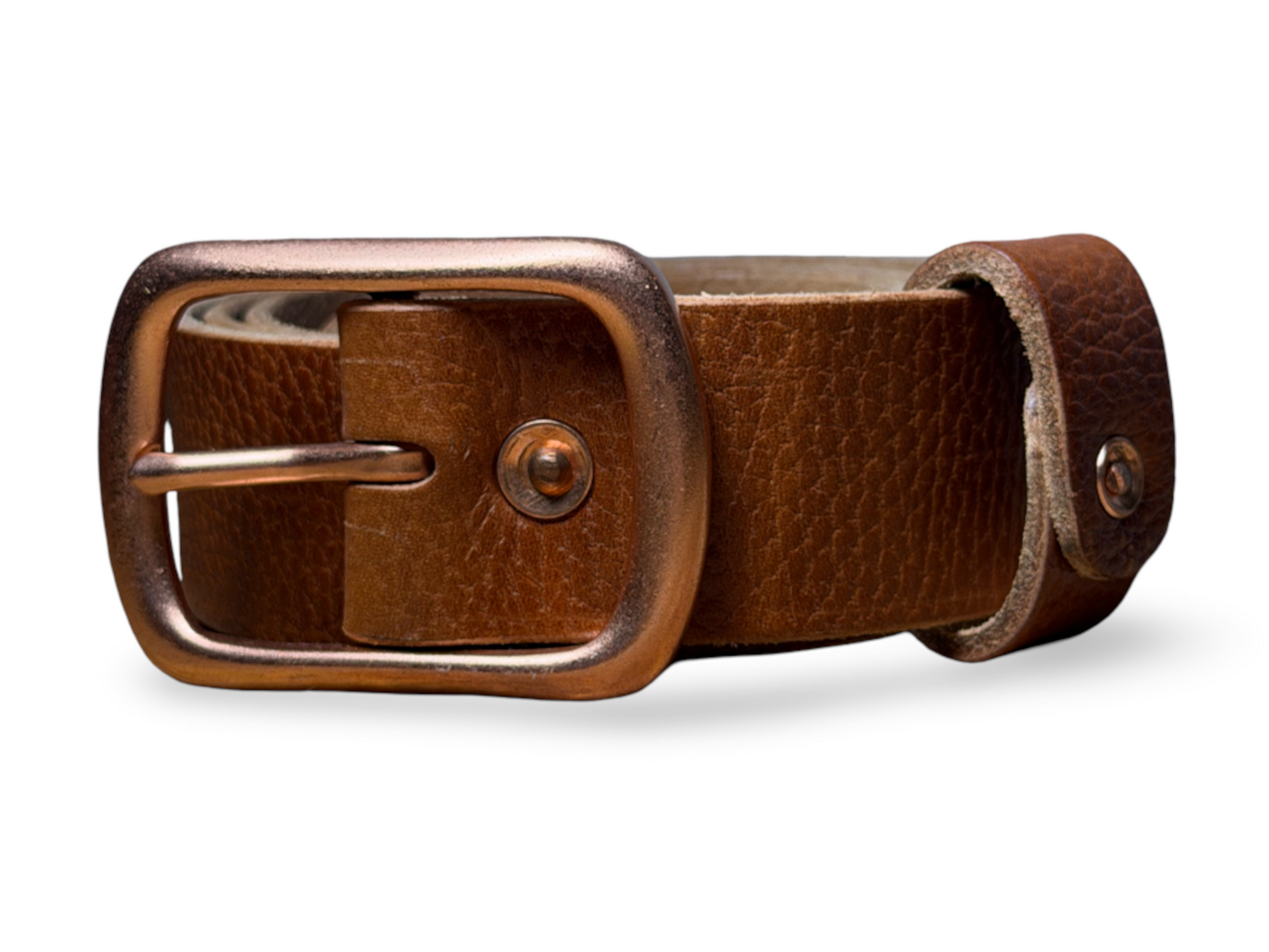 Recibe una hebilla masiva de doble cuerpo de metal en color Copper.