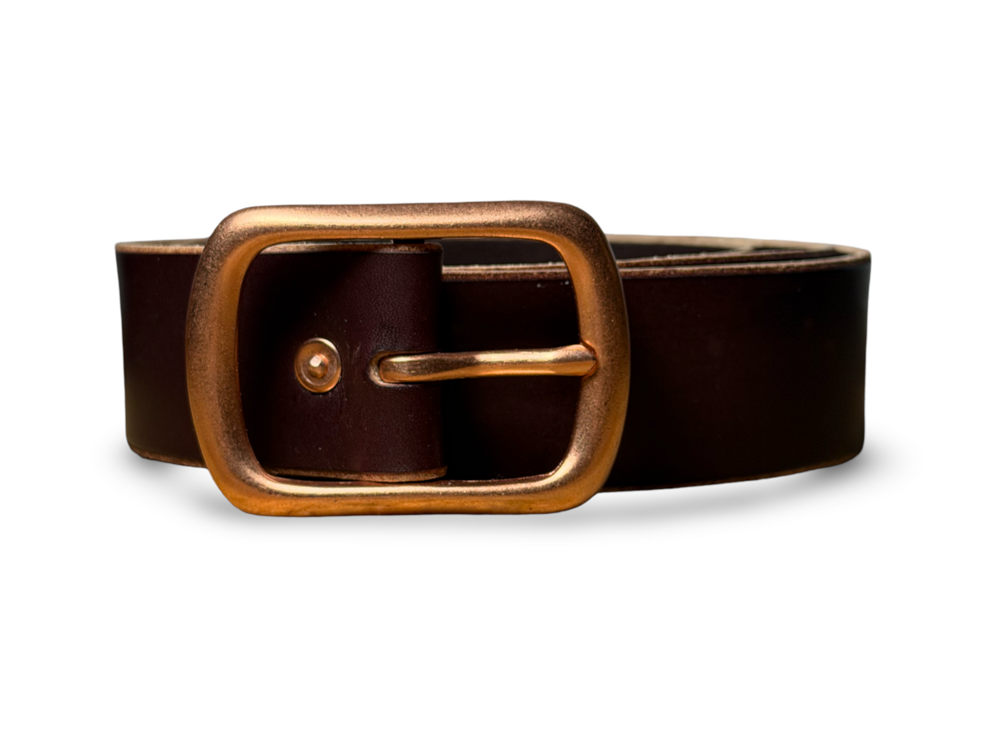Recibe una hebilla masiva de doble cuerpo en metal con acabado en color Copper.